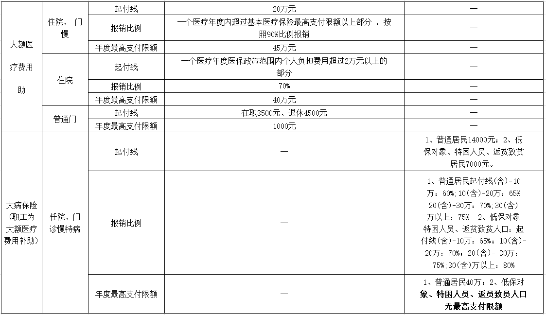 1.起付標準。一個自然年度內,參保職工、居民起付標準分
