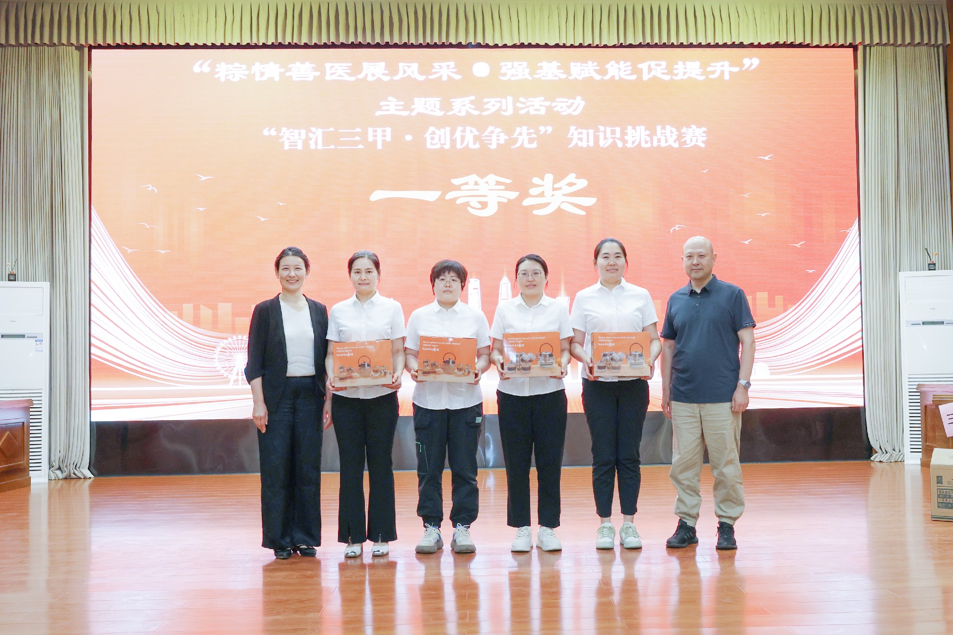 經(jīng)過緊張激烈的比拼,婦產(chǎn)科門診“沖鋒小隊”獲得一等獎;檢驗(yàn)科“檢驗(yàn)科對對隊”、超聲科“超能陸戰(zhàn)隊”榮獲二等獎;口腔科門診“牙牙樂隊”、眼科和中醫(yī)科聯(lián)合的“睛彩杏林隊”、皮膚科“精業(yè)護(hù)膚隊”榮獲三等獎。